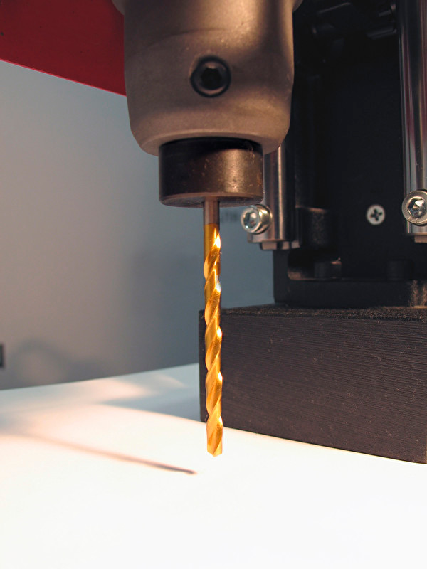 Сверлильный магнитный станок-автомат DMA-35 выполняет полный цикл сверления. После выполнения отверстия машина выводит инструмент и останавливает вращение шпинделя.