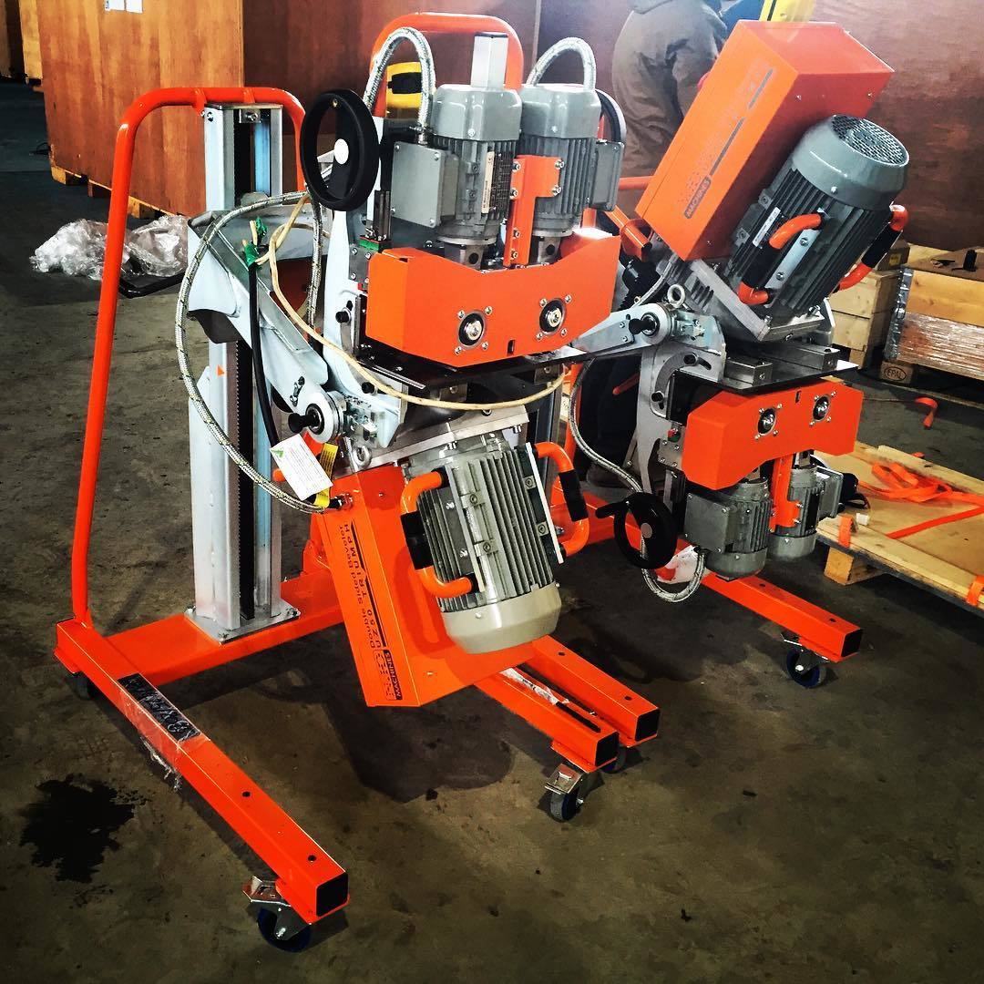 Машина построена на базе ОNIX DM-100, но имеет привод большей мощности. Выполняет отверстия корончатыми сверлами до 130 мм, резьбу до М28.