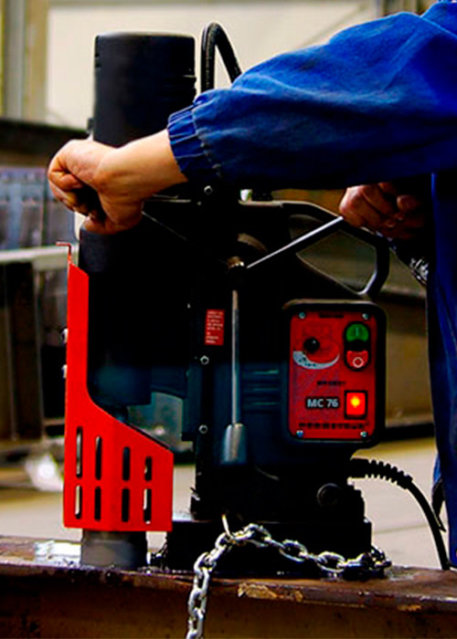 Модель DMP-50 — магнитный сверлильный станок с электрическим приводом. Предварительно станок точно фиксируется на заготовке даже без включения электричества, благодаря высококачественным постоянным магнитам на основании. Эта особенность позволяет обрабатывать заготовки как в горизонтальном, так и вертикальном положениях.