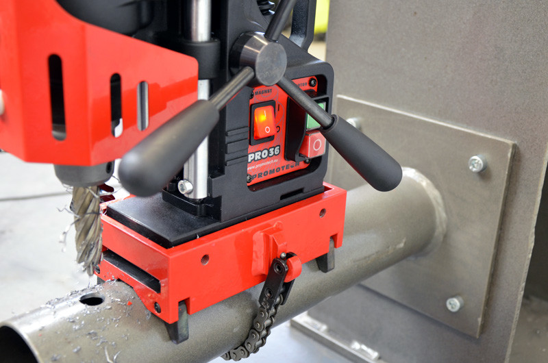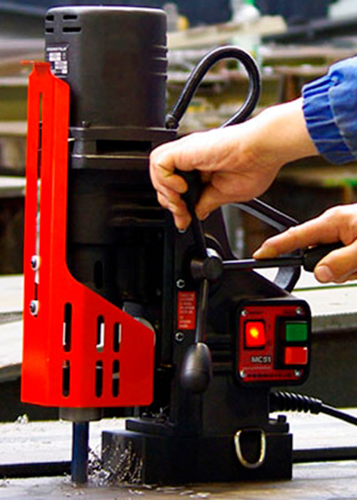Модель DMP-50 — магнитный сверлильный станок с электрическим приводом. Предварительно станок точно фиксируется на заготовке даже без включения электричества, благодаря высококачественным постоянным магнитам на основании. Эта особенность позволяет обрабатывать заготовки как в горизонтальном, так и вертикальном положениях.