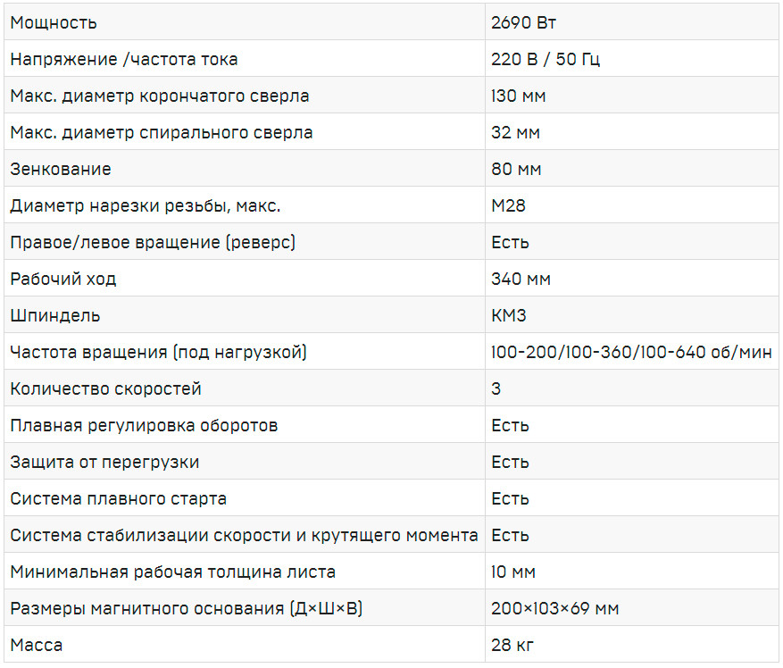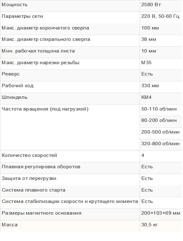 Мощный профессиональный промышленный станок, предназначенный для работы на предельных нагрузках. Без труда выполняет отверстия до 100 мм и резьбу до М26.