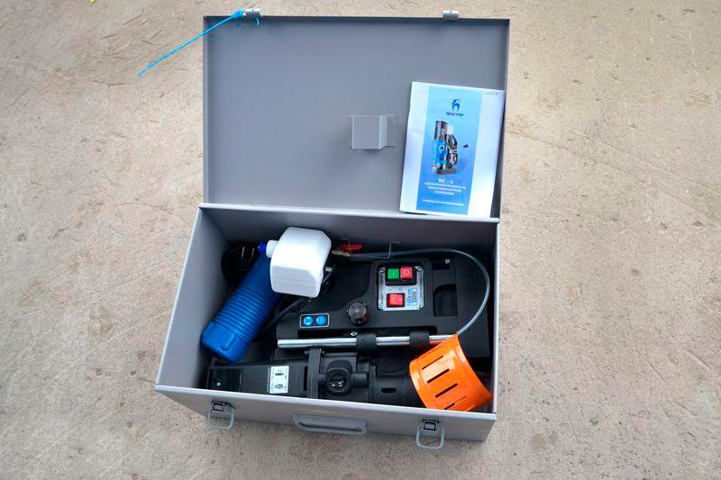 ONIX DMA-55 оснащен приводом на 1700 Вт и позволяет выполнять сверление отверстий диаметром до 55 мм. Помимо автоматической подачи им можно управлять вручную при помощи рукоятки.