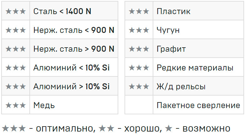 Применяется для сверления конструкционных сталей, нержавеющих сталей, алюминия, никеля, чугуна, сплавов, графита.